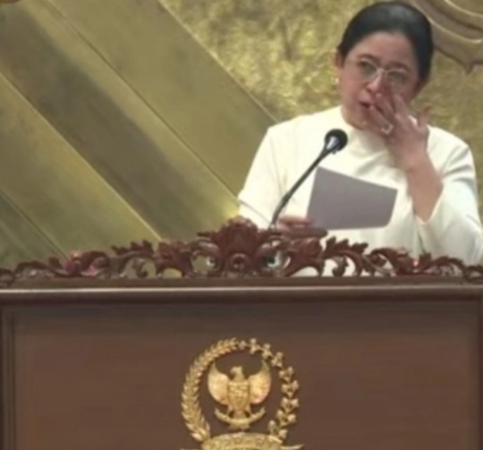 الأرخبيل – لم تستطع رئيسة مجلس نواب الشعب لجمهورية إندونيسيا بوان ماهاراني حبس دموعها عند إلقائها كلمة في الجلسة العامة الختامية في مجمع البرلمان، سينايان، جاكرتا، الاثنين (٣٠/٩/٢٠٢٤)