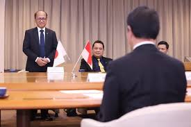 رئيس الوكالة الوطنية للبحث والابتكار (BRIN) لاكسانا تري هاندوكو (يمين) أثناء استقباله زيارة من الأمين العام للحزب الديمقراطي الليبرالي الياباني (LDP) موتيجي توشيميتسو (يسار) في مكتب BRIN في جاكرتا، الاثنين (29/ 7/2024). (أنتارا / هو برين)